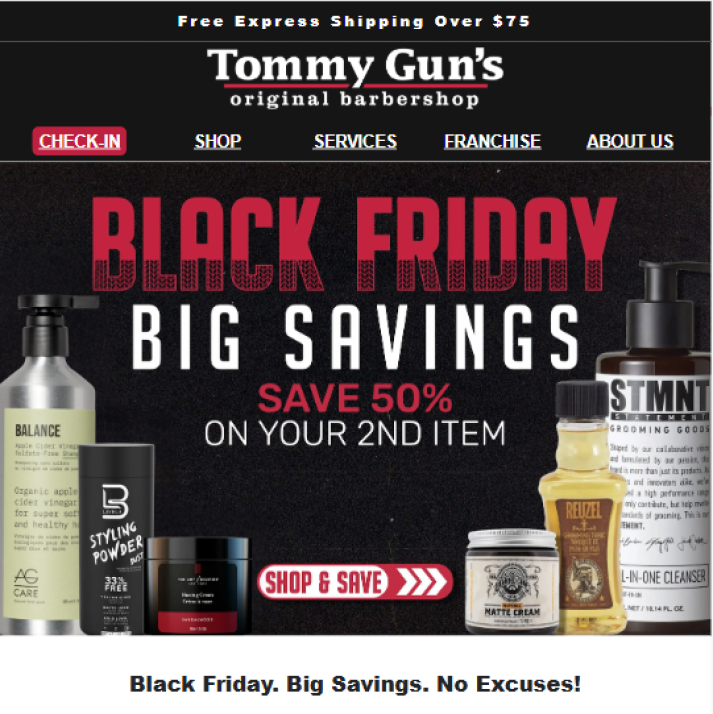 This Black Friday, score Buy One, Get One 50% Off on top professional brands: AG Care, Educated Beards, American Crew, Reuzel, The Art of Shaving, L3VEL3, Paul Mitchell, Nioxin, Uppercut Deluxe, STMNT, and The Bearded Chap. Stock up on essentials, try something new, or grab gifts for the men in your life — but act fast, this deal won’t last forever.