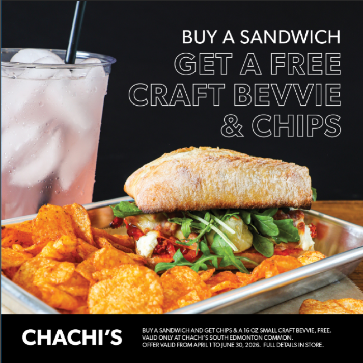 Buy a sandwich and get chips & a 16 OZ small craft bevvie, FREE! Offer valid from April 1 to June 20th 2026. Full details in store.